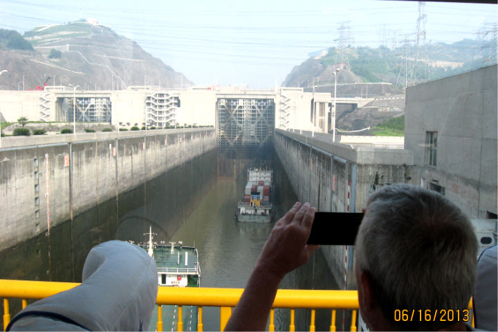 | From the bus we see one of the locks. There are two sets, one for each direction. |
